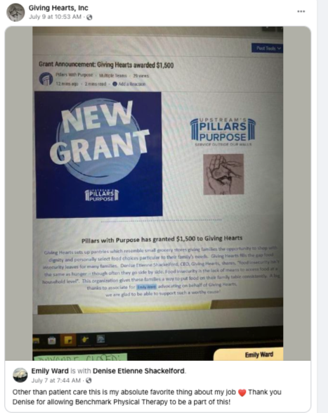 Giving Hearts presented a project for funding. The proposal was to help support grandparent's “Hunger Needs within their immediate household.” Upon observation, many Seniors were raising Grandchildren on a limited income. The Pantry became a welcomed relief providing “kid-friendly” food items. Based on budgetary restraints, the supplies of children-centered foods were limited to the shelves. The funding from the grant was utilized to specifically purchase additional food that met the criteria for this category.